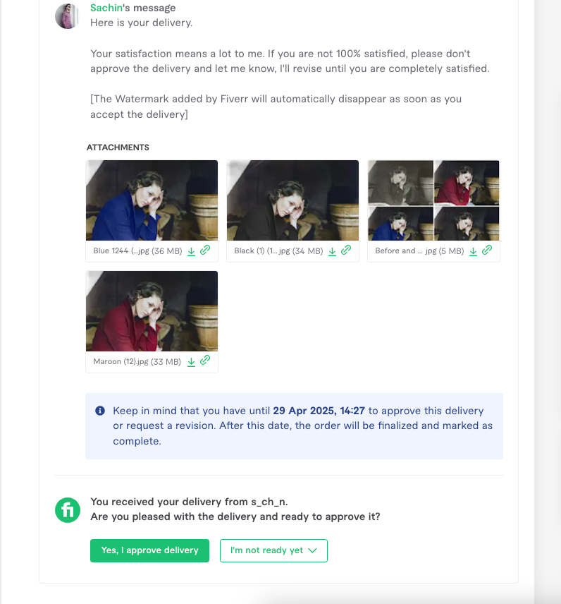 To try the same AI colorization expert, visit this page. I highly recommend Sachin — he’s fast and really good. You’ll also get free samples.