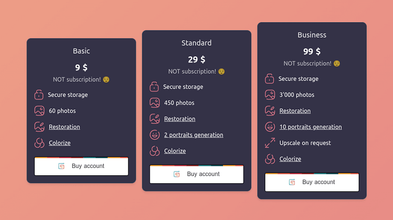 In addition to the free plan, there are three paid options. The main benefits of the paid plans are more images you can colorize and no watermarks on the output.