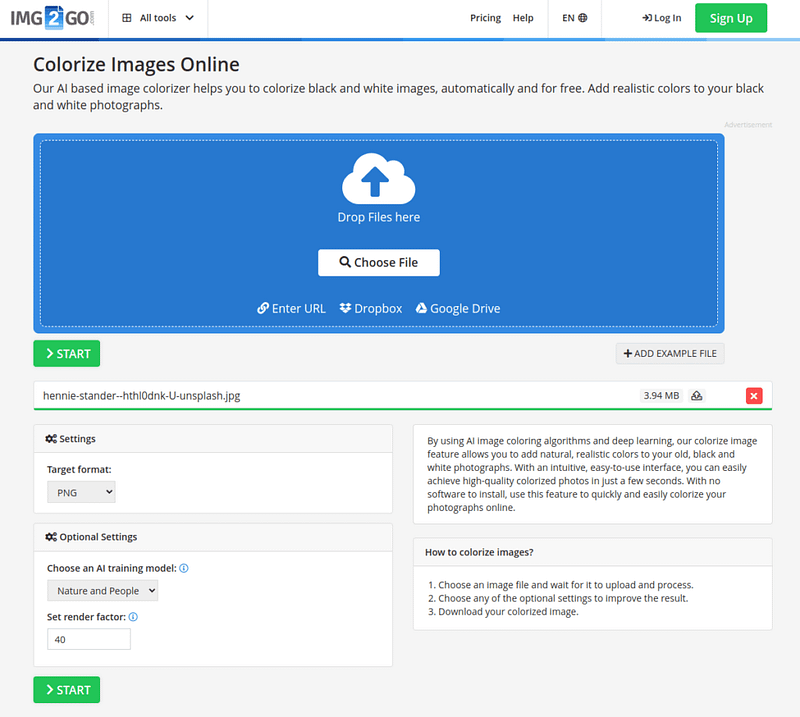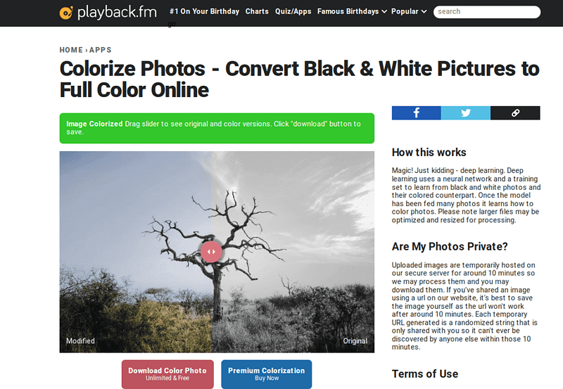 Like the other tools on this list, you just go to the website, upload an image, and wait a few seconds to get a colorized version.