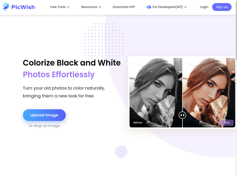 Picwish is a fast solution for bringing old photos to life with natural colors. It’s also known for its API, which developers can use to integrate the service into their apps.