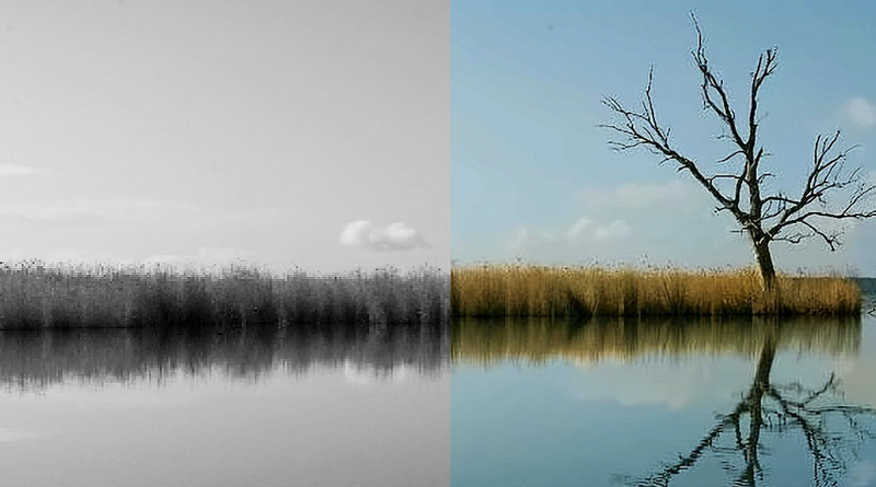 Here’s an example where I turned a black-and-white image into a colorized scenery photo.