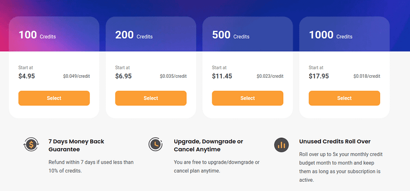 Besides the free plan, Vance AI has a credit-based payment system for power users: