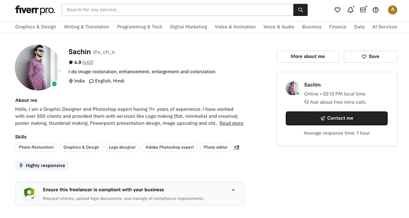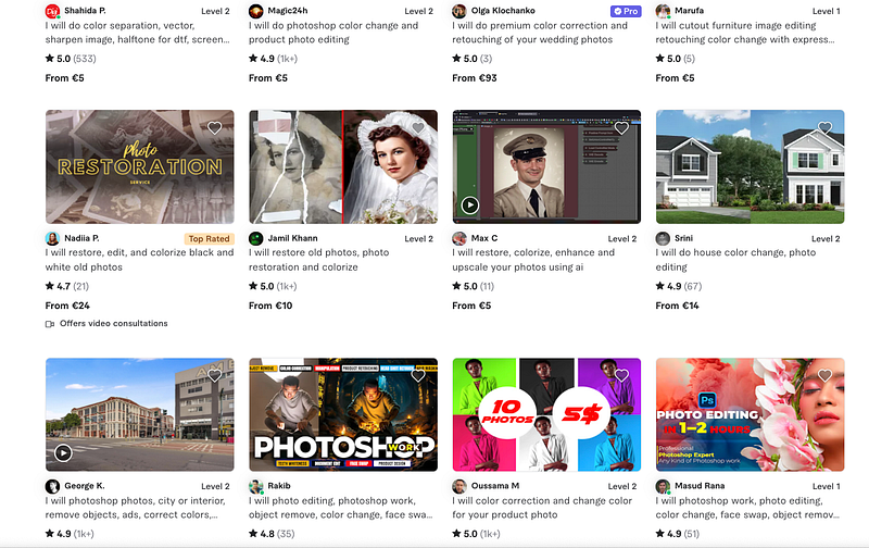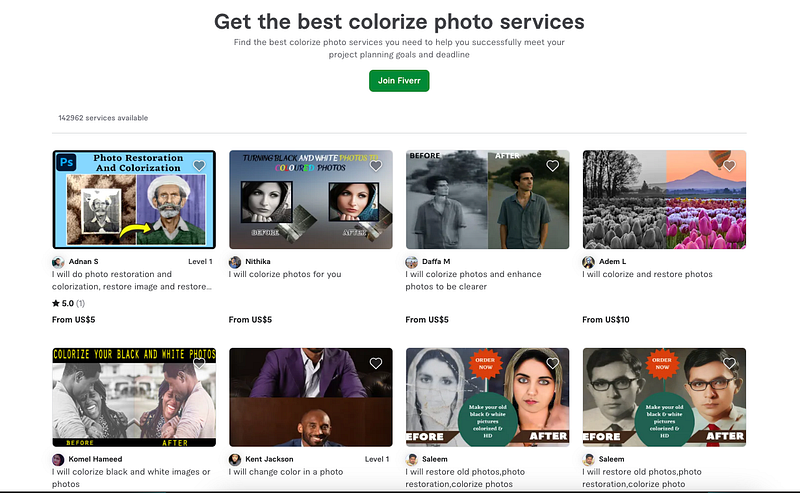 Fiverr Pro offers affordable professionals who can colorize your images and improve on AI results.