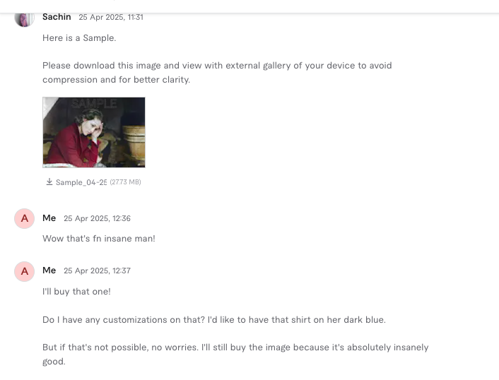 He responded quickly and not only shared details about the gig, but also had already made a colorized sample for me.