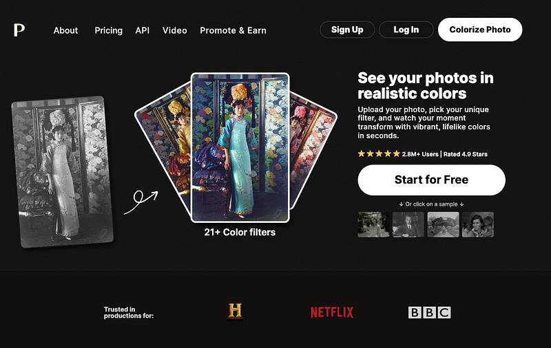 Colorize.cc is an easy-to-use AI image colorizer. You don’t need to download anything or sign up to use it. Even better, you can try it for free!