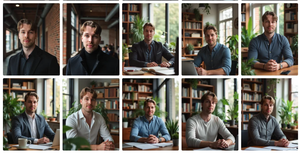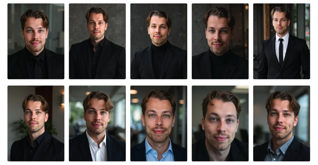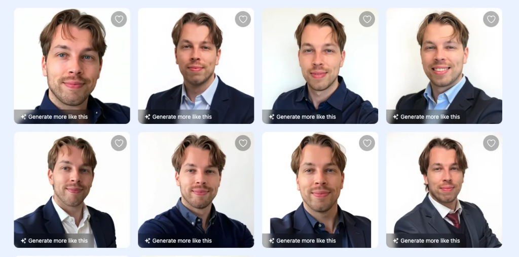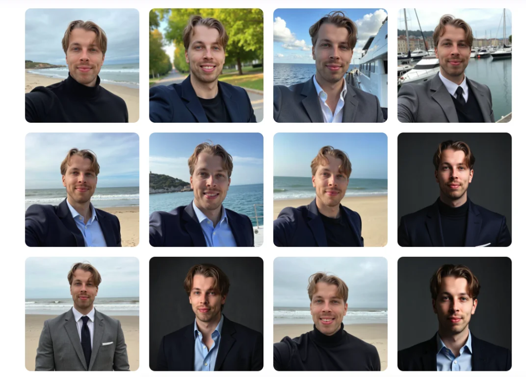 Simply upload a set of selfies, and it will generate polished, professional images you can customize directly on the platform.