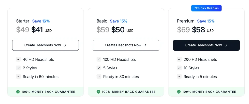 For the highest-quality AI headshots, I recommend HeadshotsByAI. While this tool doesn’t allow you to customize your images at all, it creates the sharpest images in my experience.