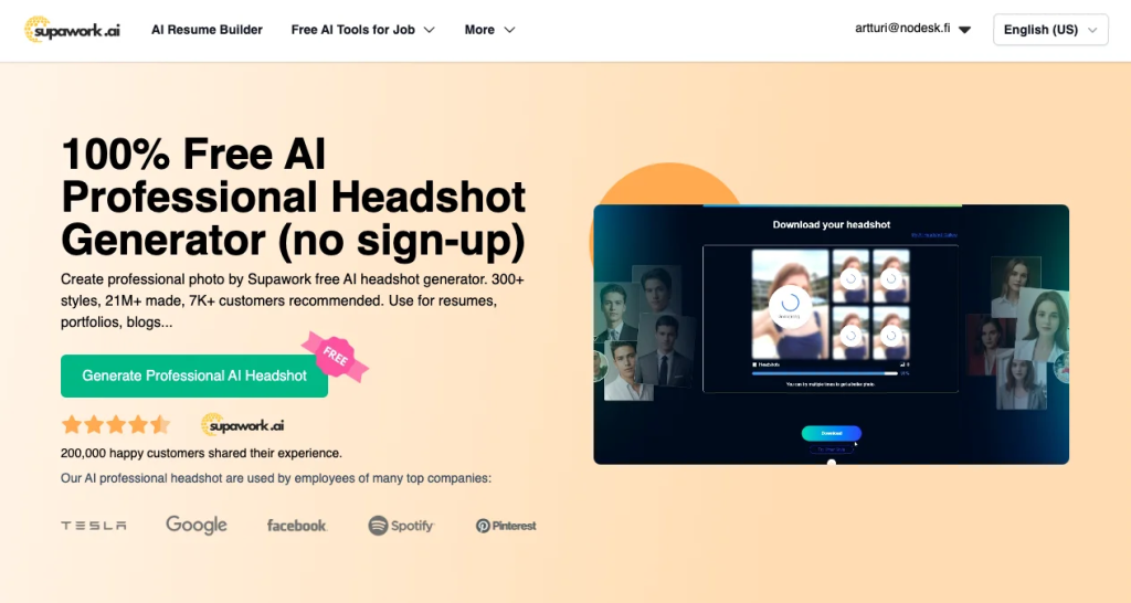 Then last but not least, we have a free AI headshot generator on the list. Out of the ones I tested, this is the best free one.