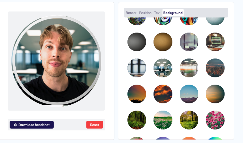 Whether you’re polishing up your LinkedIn profile or need a clean, polished shot for your company website, it offers a variety of modern, corporate-style backgrounds to match your goals. It’s straightforward, and efficient, and ensures your headshots look sharp and on-brand.