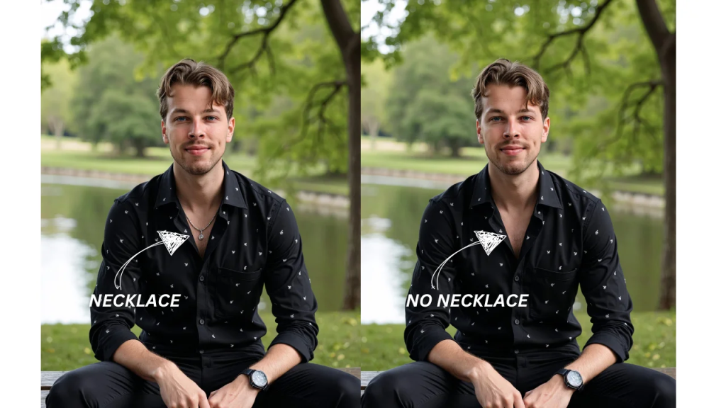 That’s cool! The lighting is accurate and looks realistic. But this is all luck. The AI didn’t modify my face lighting, it just happened to be a good background in the catalog.