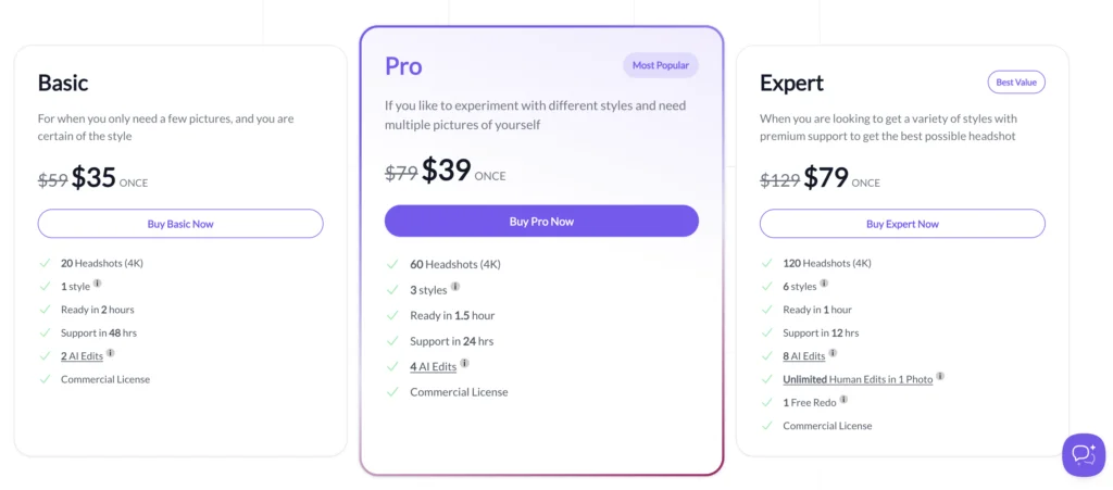 Notice that you can edit your images with a human editor from the BetterPic team! This is something that’s not available in any other AI headshot generators.