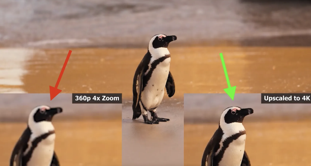 As you can see on the left-hand side, the video quality of that poor penguin is lost. This is because the original video is simply not sharp and detailed enough.