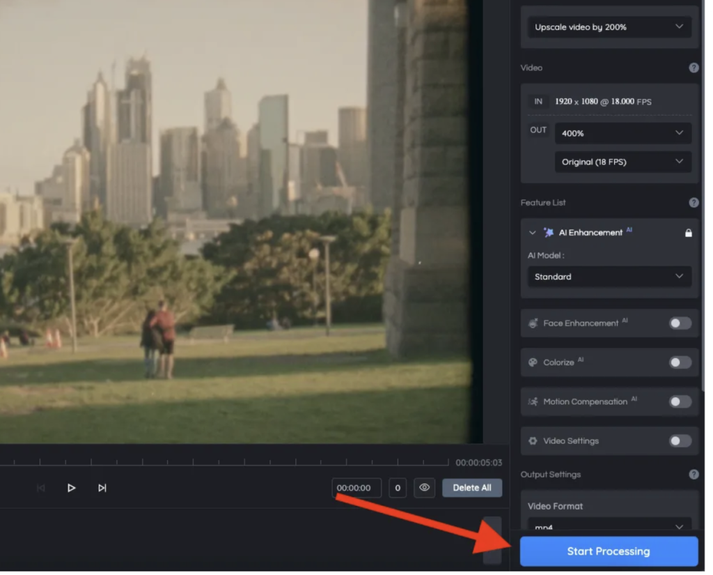 • Natural Output: Creates enhanced videos with a natural look. This tool also avoids over-saturation and excessive brightness common in other upscalers.