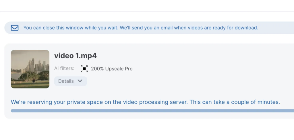 The upscaling process takes a bit of time, but in my case, the same 5-second clip was processed much faster than with Tensorpix.