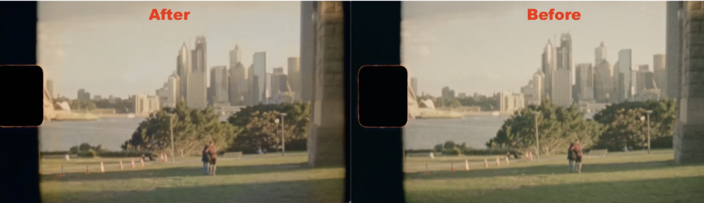 For example, here’s a side-by-side comparison of the above video and the upscaled one (I’m using screenshots here, though.)