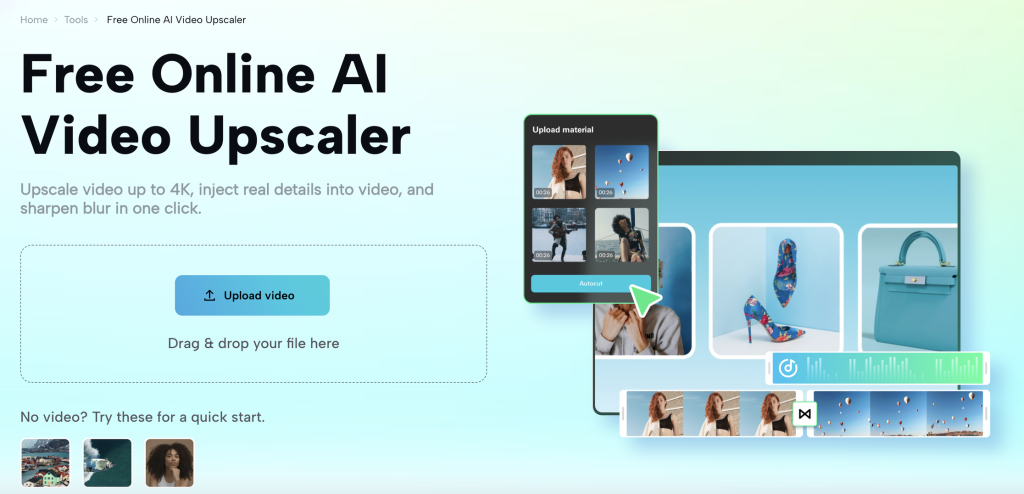 CapCut’s free AI video upscaler is an online tool designed to enhance video quality by upscaling to 4K resolution.