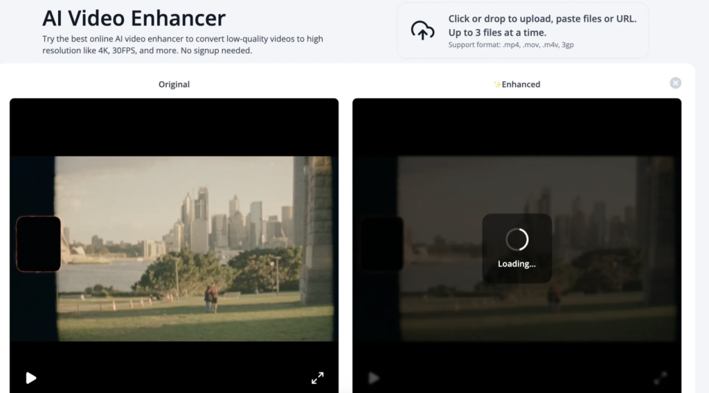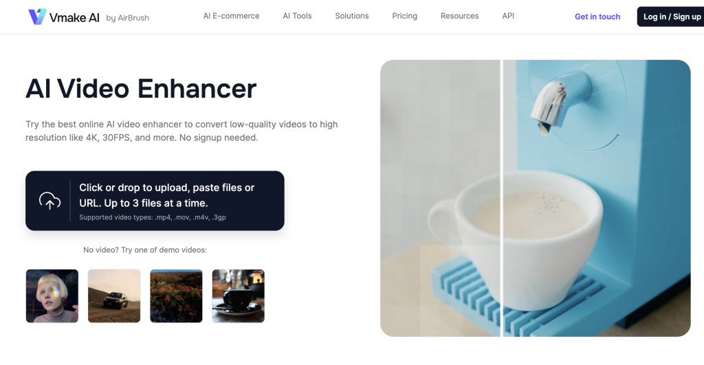 Vmake AI Video Enhancer is another online tool for boosting the quality of videos (and images.)