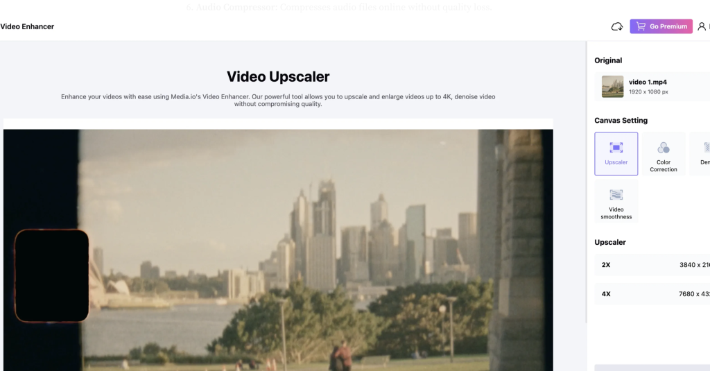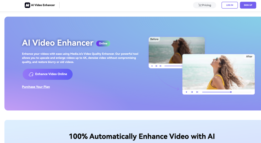 Media.io AI Video Enhancer is a multimedia file enhancer with a video upscaler feature.
