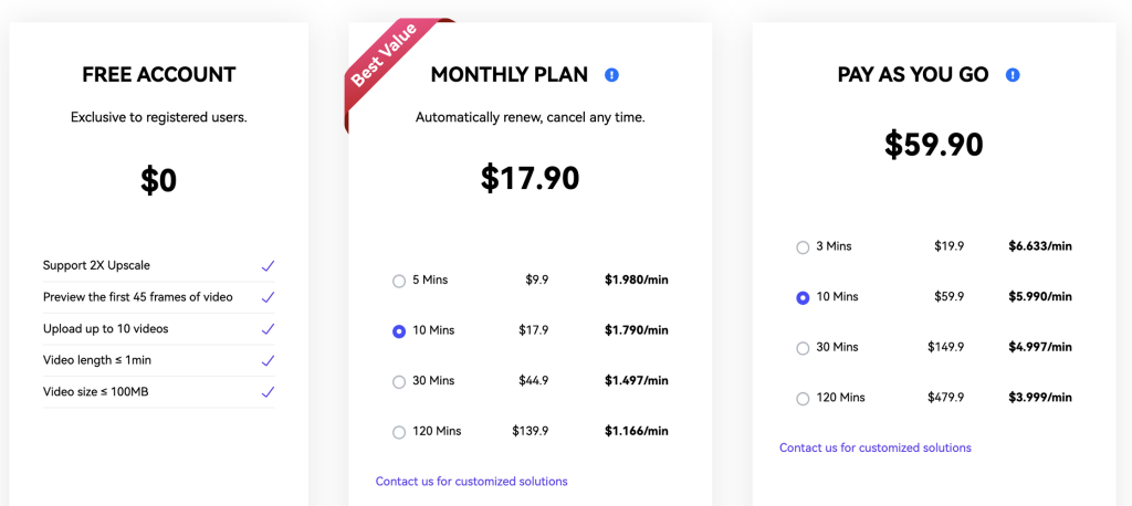 • Very Limited Free Trial: It only offers you a basic short 2x upscaling as a free trial.
