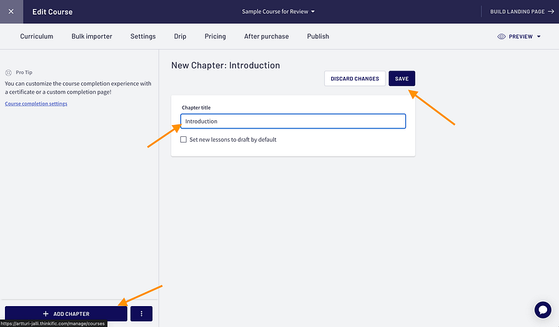 For example, your first chapter could be an introduction. Inside it, you can add lessons like who you are, what to expect, and so on.