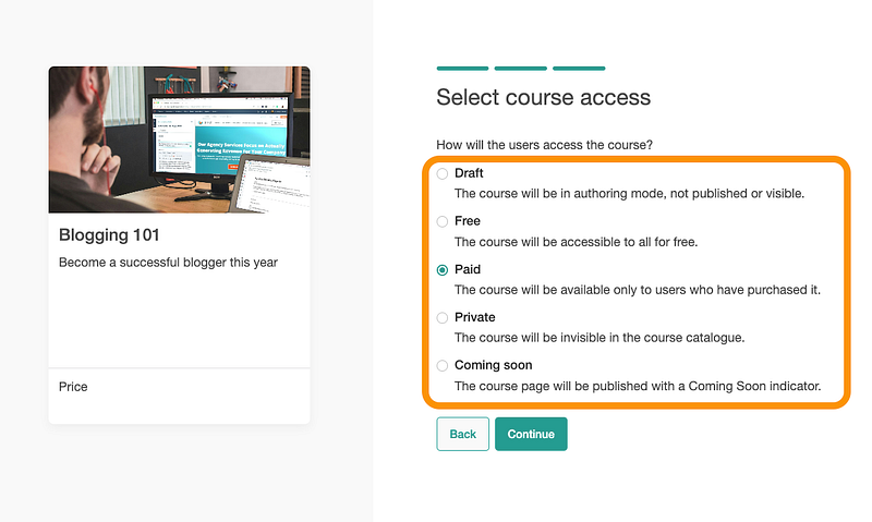 Not every course platform lets you do this. Most either require payment or an application to get started.
