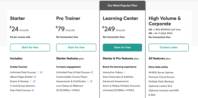 Thinkific has a generous free plan you can get started with. Use the above links to activate it.