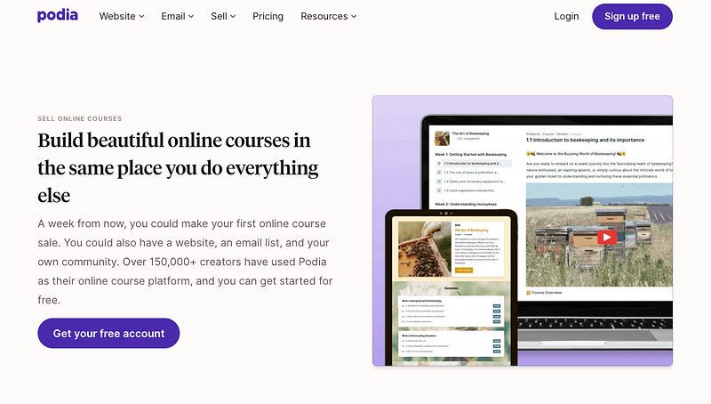 Podia is awesome because you can sign up for free and start creating courses right away.